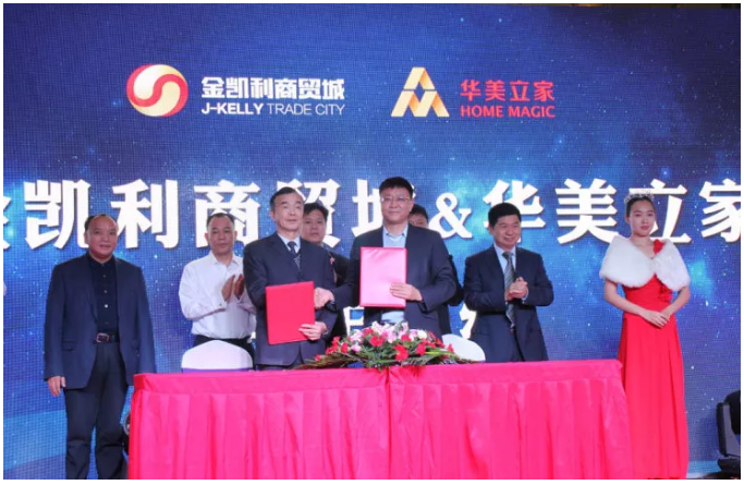隨著金凱利集團總經理俞祖放與華美立家副總裁侯宇彤在到場領導和嘉賓的見證下正式簽約。同時,馬可波羅瓷磚和蒙娜麗莎瓷磚也簽約進駐金凱利商貿城,本次簽約儀式也落下帷幕。
