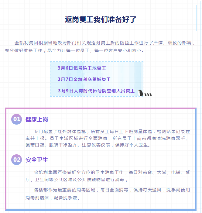 金凱利集團(tuán)俞祖放總經(jīng)理對復(fù)工后的防疫工作進(jìn)行了嚴(yán)謹(jǐn)、細(xì)致的部署,做到復(fù)工防疫兩不誤。