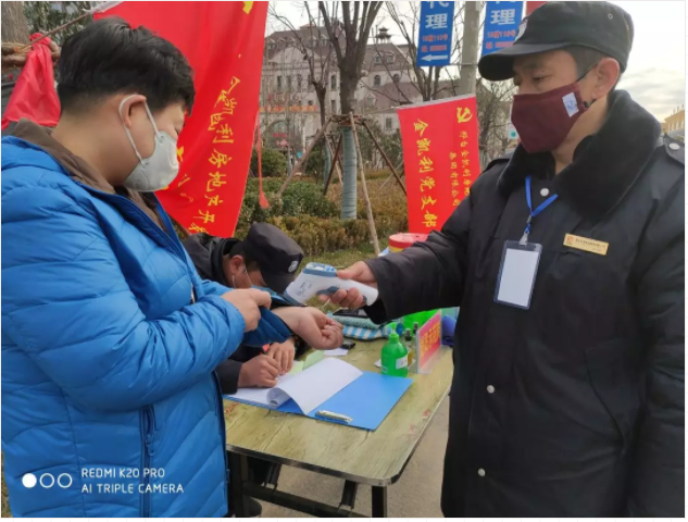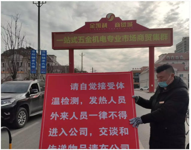 金凱利商貿(mào)城全封閉,只留下正門進(jìn)出,保安崗位人員24小時在崗,對所有進(jìn)入金凱利商貿(mào)城人員進(jìn)行測體溫,消毒服務(wù),并且登記詳細(xì)資料。在保證商戶有序復(fù)工的情況下,保證廣大商戶和客戶的安全。