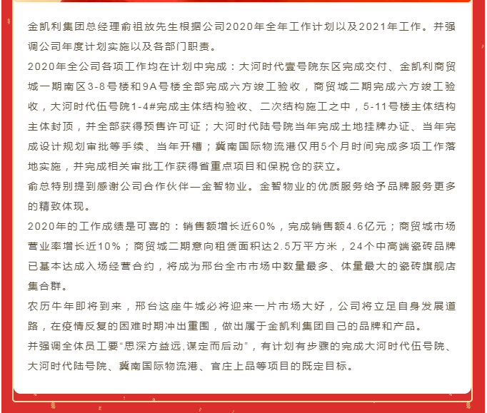 聚智篤行 燃勢騰飛‖金凱利集團2020年度工作總結