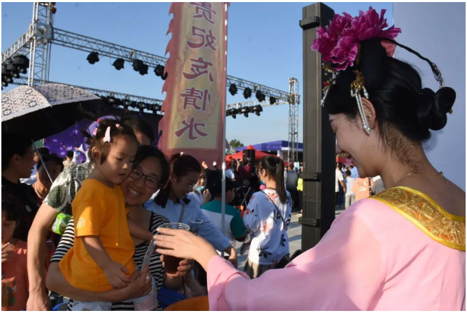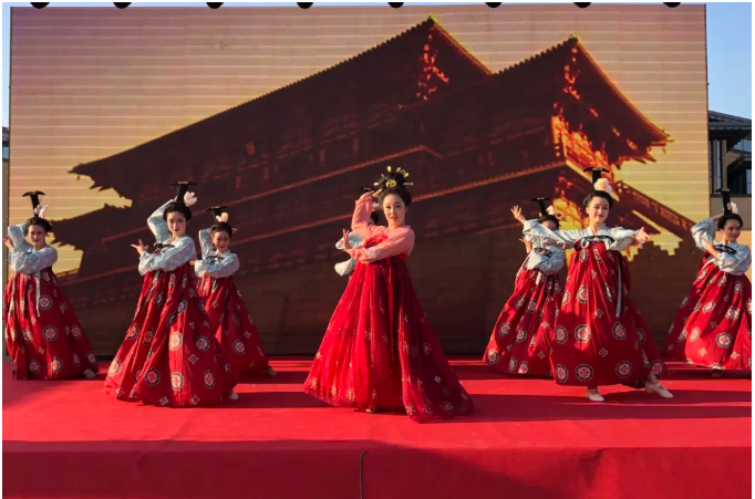 “清風故影 夢回府前”大型沉浸式國潮演藝博得參展群眾的眼球,大家紛紛駐足打卡拍照參與互動。盛世群舞(漢風舞蹈)、麗人行(快閃)、十二花神巡游(舞蹈)、漢婚禮儀展示等節(jié)目正輪番上演。沉浸式古風集市內(nèi),身著漢服的美麗小姐姐正在熱情地為群眾點朱砂、印花鈿。房展會逛累了,想輕松一下的群眾,在投壺賽場一決高下。想留紀念的,則換裝漢服后打卡拍照。房博會的亮點“國潮”風格體現(xiàn)得淋漓盡致。