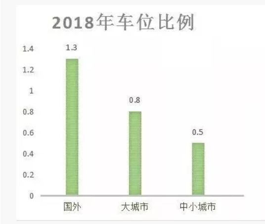 據(jù)公安部交通管理局發(fā)布數(shù)據(jù)顯示,2018年機(jī)動車保有量已達(dá)3.27億輛,其中汽車保有量達(dá)2.4億輛,比2017年增長10.51%,增長速度遠(yuǎn)遠(yuǎn)超于車位增長。目前我國大城市停車位與私家車的平均比例約0.8,中小城市約為0.5,與發(fā)達(dá)國家1.3 相比,我國停車位與私家車的比例嚴(yán)重偏低。